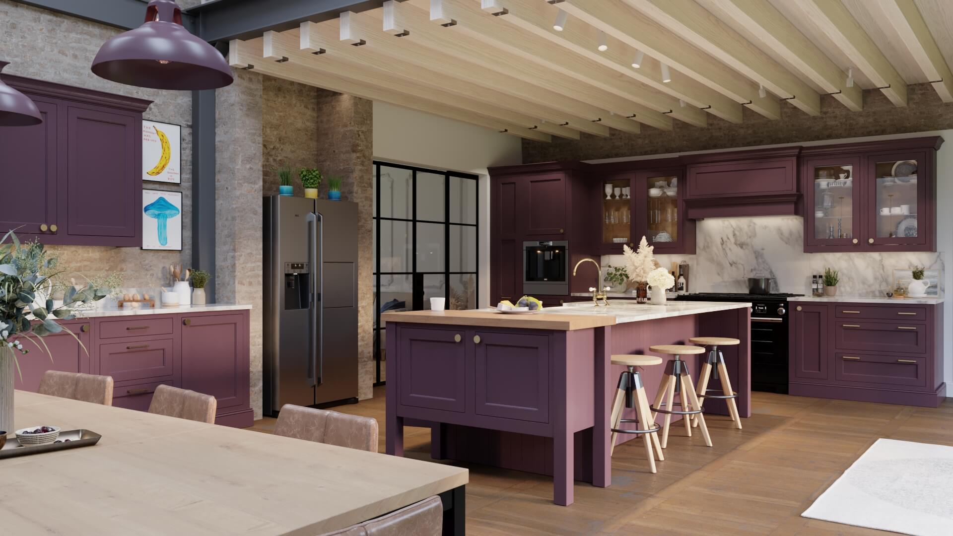 By adding purple to your kitchen space, you’ll get a timeless feel because deeper tones mimic natural pigments found in berries, stone and botanicals.