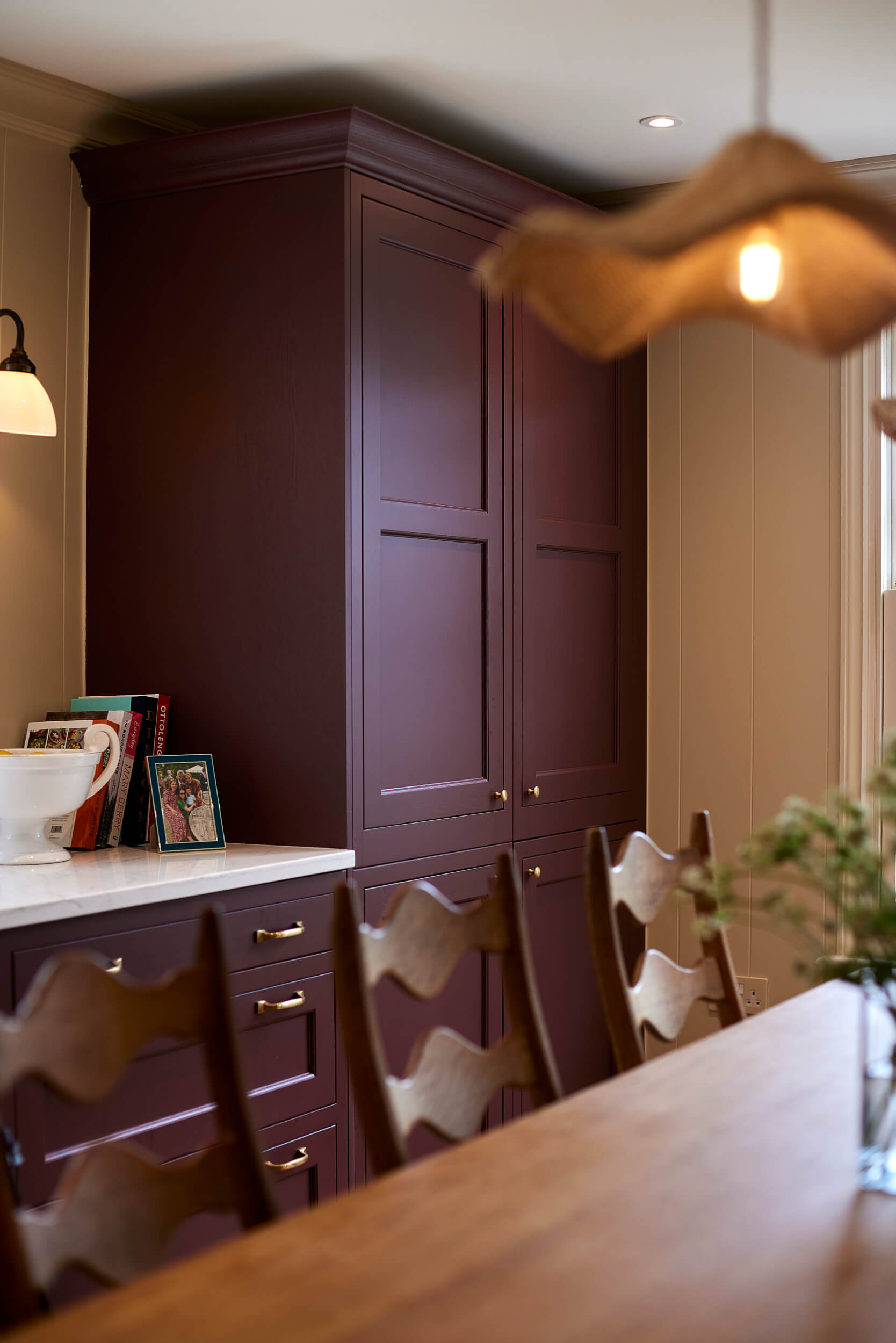 The standout feature of Tiffany’s kitchen is the rich, red-toned cabinetry, crafted through our exclusive colour match service. She wanted a tone that was bold yet timeless — something that would stand out against the light walls and complement her natural oak dining furniture. This custom-created shade delivers the perfect balance of warmth, depth, and elegance, adding personality to the design while maintaining a sense of understated luxury.