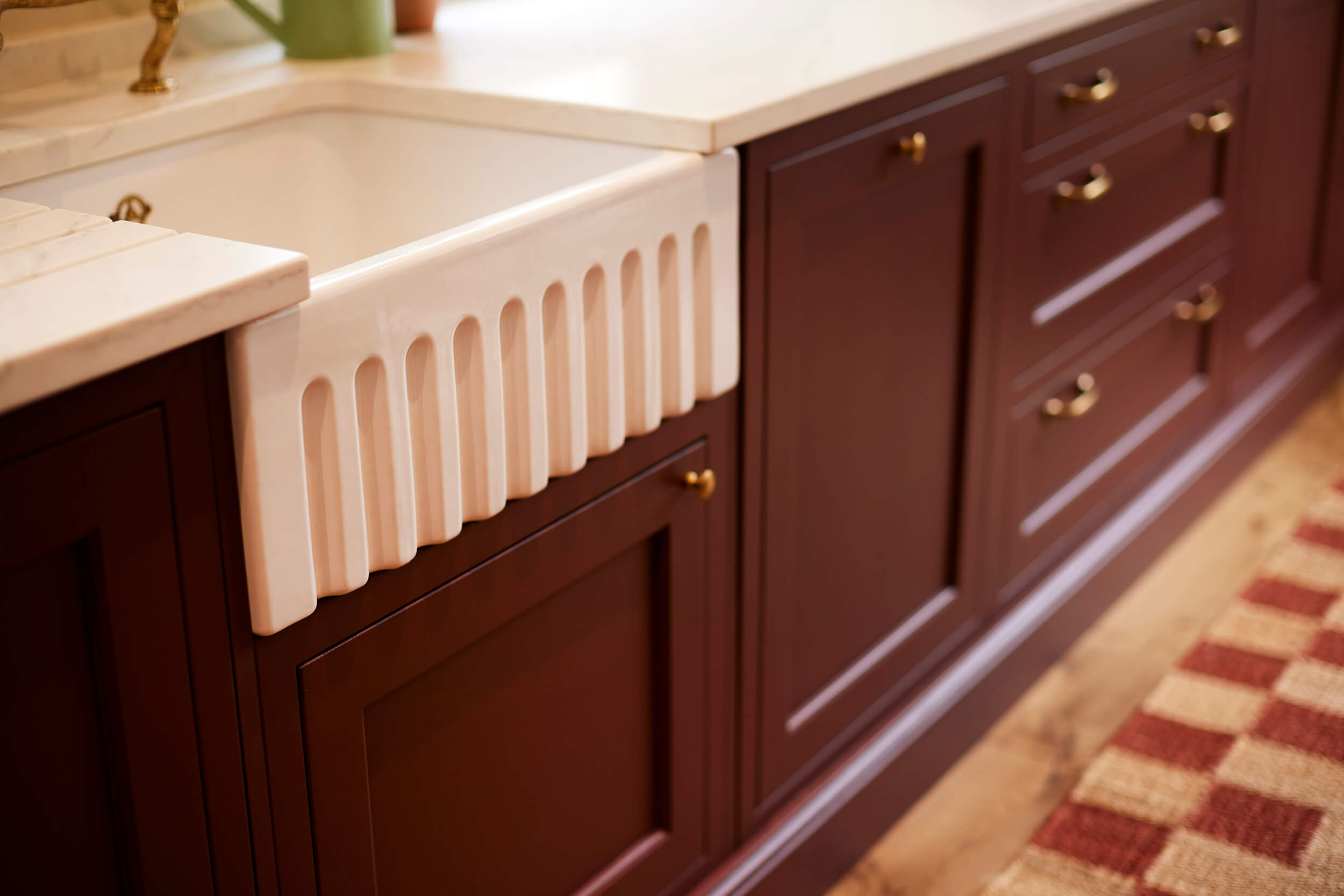 When renovating her central London apartment, Tiffany knew the kitchen needed to be a space that truly reflected her personality — warm, timeless, and full of character. With this vision in mind, our Hampton in-frame range became the perfect foundation, offering classic craftsmanship with a refined, modern edge. Paired with a bespoke deep red shade created through our colour match service, the design brings together rich colour, elegant detailing, and a welcoming atmosphere that transforms her apartment kitchen into a standout city retreat.